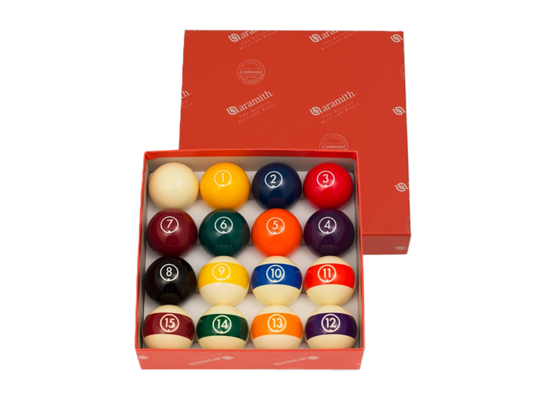 Aramith Continental - класичний комплект з 16 куль (15 + 1 биток) стандартного діаметру 57,2 мм для гри в пул на будь-яких 6-7-8-9 футових більярдних столах. Кулі виготовляються в Бельгії з фірмової фенольної смоли Aramith, що забезпечує ідеальний баланс, стабільне катання та значно більший термін служби порівняно із звичайним поліестером.
