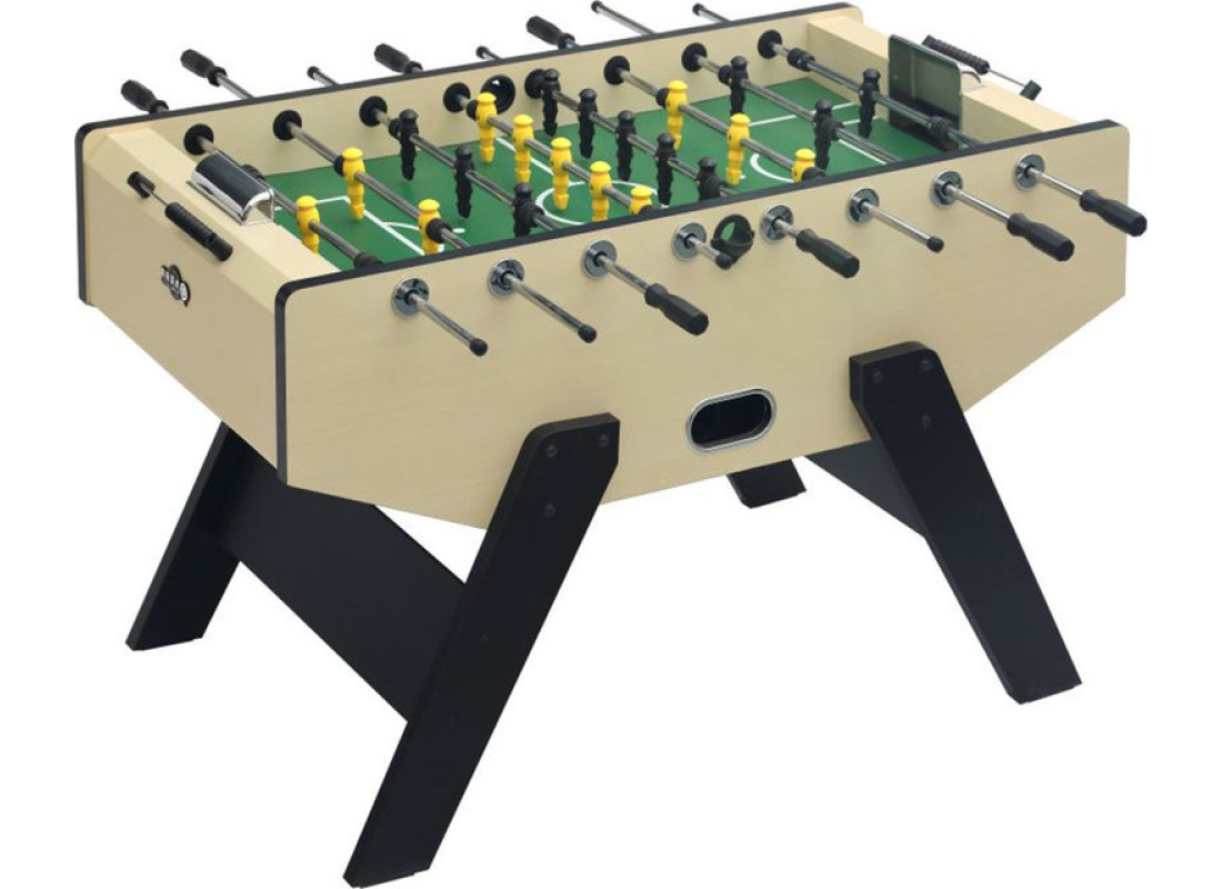 Ігрове поле виготовлено з ударопрочной ламінованої деревини, стійкою до подряпин і іншим механічних пошкоджень. Штанги мають плавний хід і обертання, завдяки чому гра стає особливо комфортною і динамічною. Стіл має значну вагу і стійкою конструкцією, яка витримає найпалкіші матчі. Для ведення рахунку, стіл оснащений механічним лічильником.